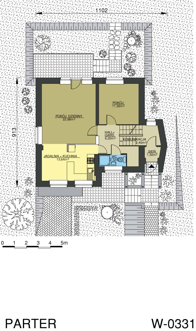 Ładny dom z poddaszem mieszkalnym i wysokim przyziemiem, zaprojektowany z myślą o inwestorach planujących otworzyć prywatny gabinet lekarski lub stomatologiczny. Dwa osobne wejścia zapewnią komfort zarówno domownikom jak i pacjentom. Komfortowe warunki czekania na wizytę zapewnia spora poczekalnia oraz WC do dyspozycji pacjentów. W-0331 to optymalne rozwiązanie dla pięcioosobowej rodziny.
