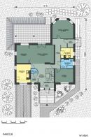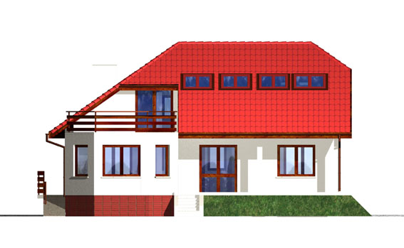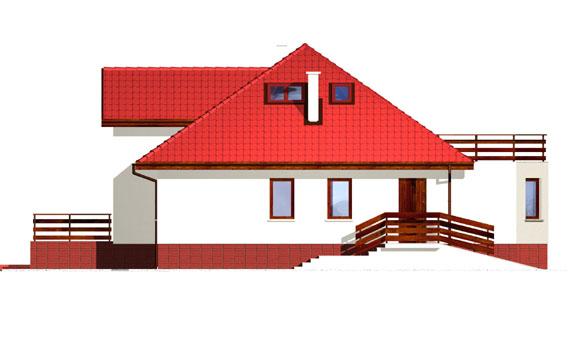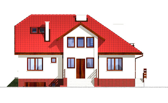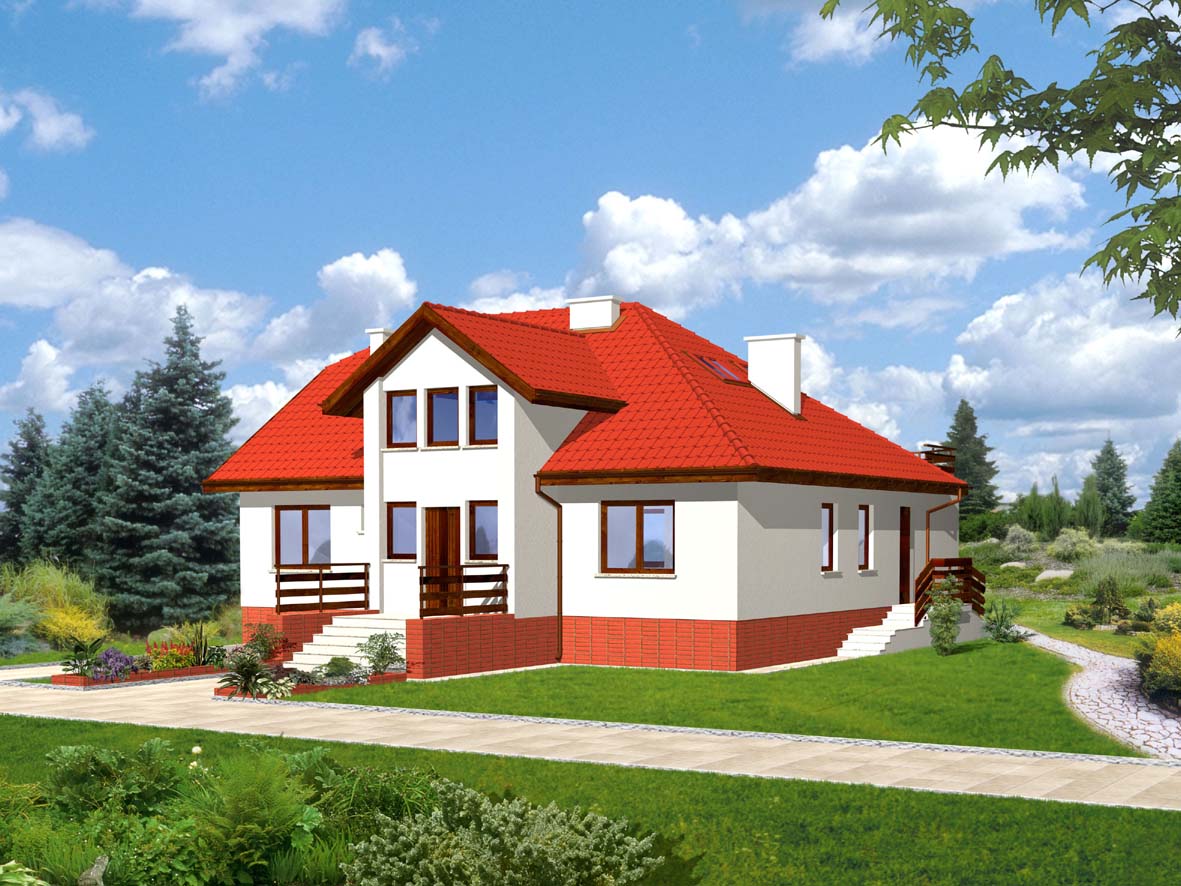 Ciekawy, duży dom o asymetrycznej bryle z piwnicą i poddaszem mieszkalnym. Dwa osobne wejścia oraz dwie kuchnie na parterze dają możliwość komfortowego mieszkania dwóm rodzinom. Takie rozwiązanie sprawdzi się w przypadku rodziny wielopokoleniowej.