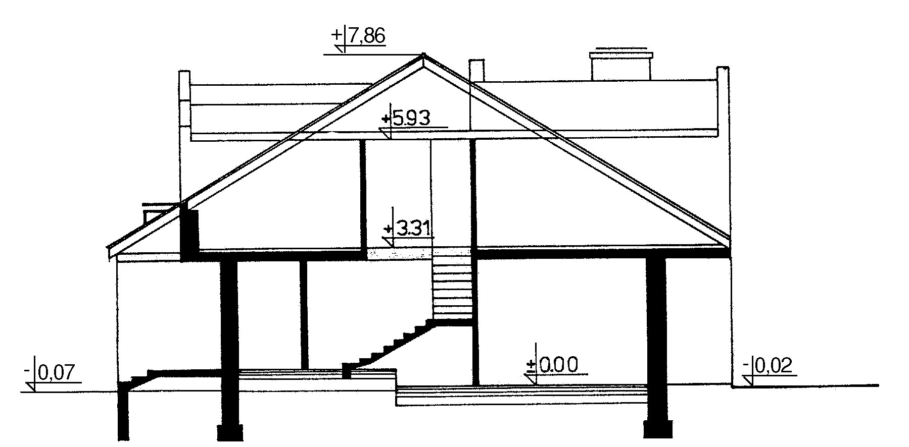 *ściany warstwowe, ceramiczne *stropy gęstożebrowe *dach o konstrukcji drewnianej, dwuspadowy o nachyleniu połaci 29°, kryty dachówką bitumiczną